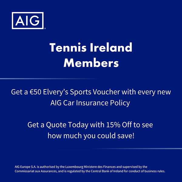 Republic of Ireland members get an ‘AIG Tennis’ car insurance quote at https://www.aig.ie/home/about-us/our-sponsorships/tennis or call their dedicated car insurance team at 0818 244 244 and see how much you could save!