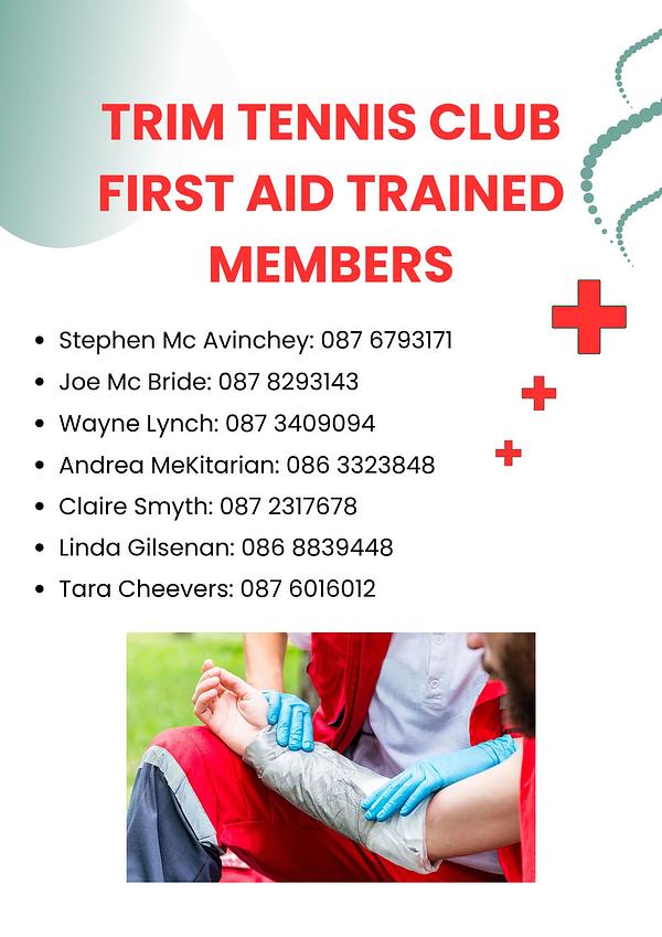On this poster are a list of members who are first aid trained and how to contact them!